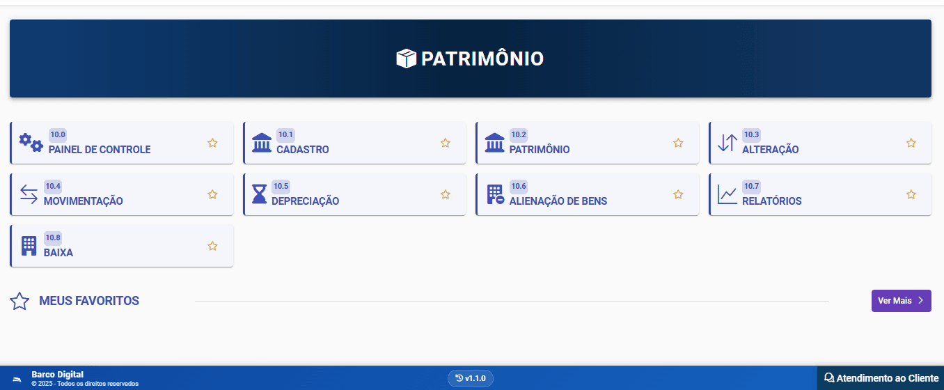 Controle total dos bens móveis e imóveis, com gestão de depreciação, reavaliação, transferências e inventário automatizado via código de barras ou QR Code.